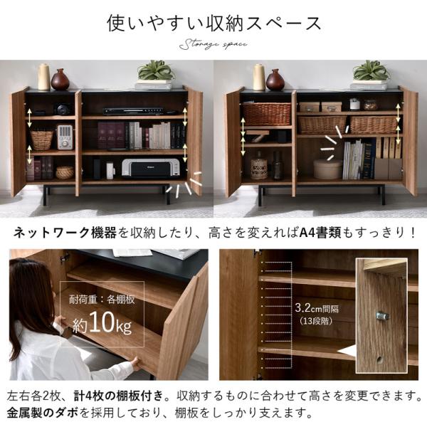 キャビネット サイドボード リビングボード 幅120cm 北欧 木製 おしゃれ スリム 脚付き 電源タップ コード穴 配線すっきり 本棚 扉付き お掃除ロボット対応