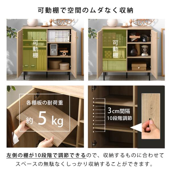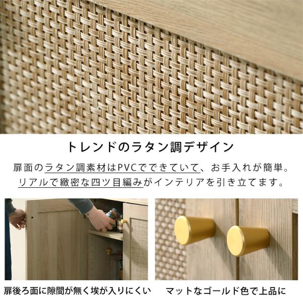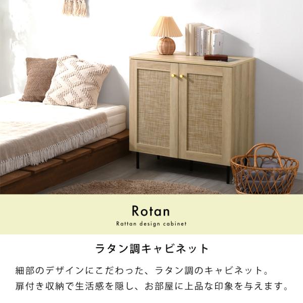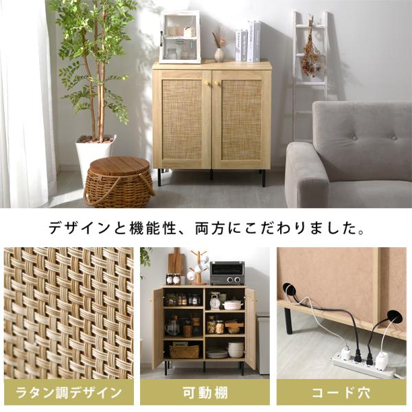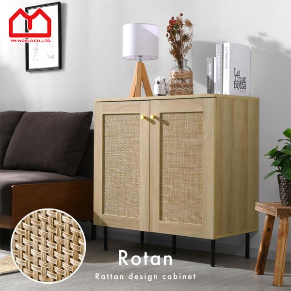 ラタン調 キャビネットおしゃれ 可動棚 大容量 収納 幅75.5cm 扉付き コード穴 ルーター収納 チェスト 北欧 かわいい 脚付き 木製 ラタン 小さい 奥行40 ラック