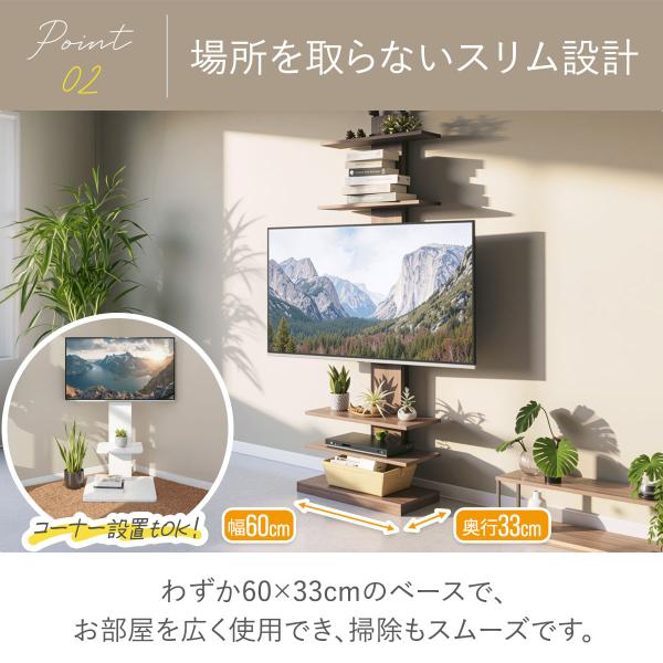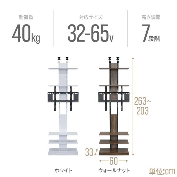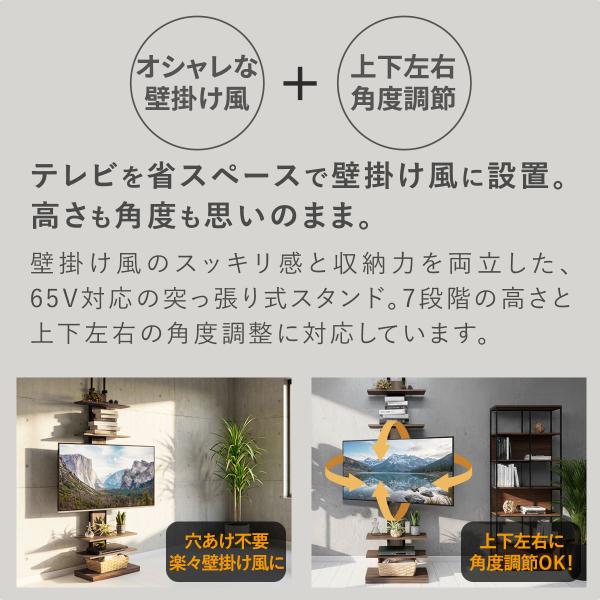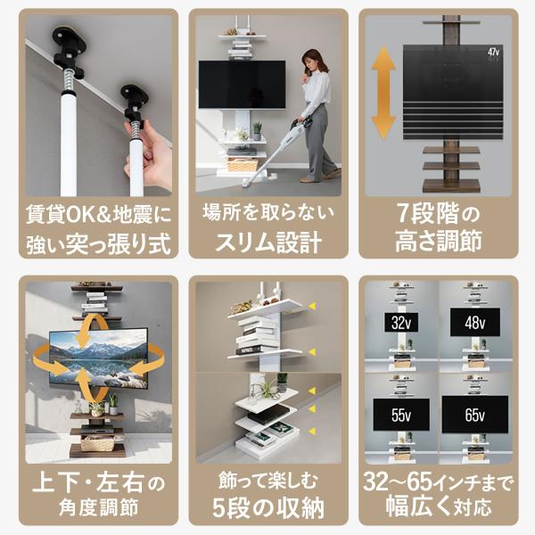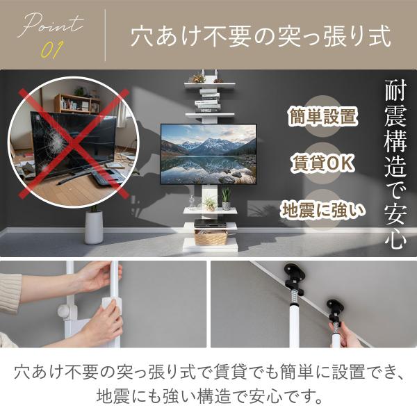 テレビスタンド 突っ張り式 耐震 天井固定 32型〜65型対応 首振り 上下左右 角度調整 高さ調節 ハイタイプ 壁掛け風テレビスタンド 棚付き 1年保証 送料無料