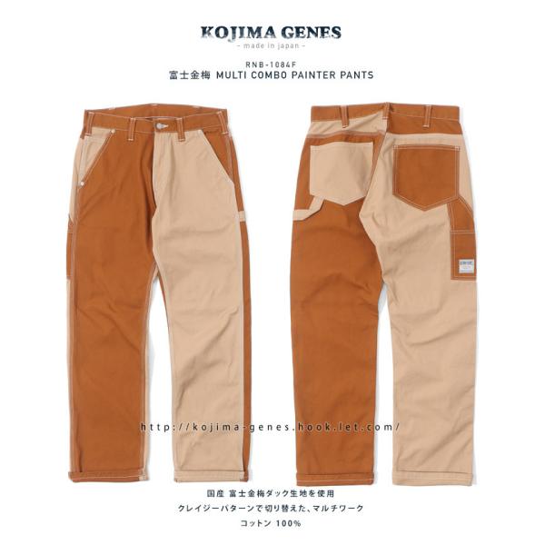 マルチコンボ ペインターパンツ 富士金梅 【 児島ジーンズ 】 メンズ バイク キャンプ アウトドア キャンツー 切り替え ブラウン カーキ 橙 緑【 RNB1084F 】