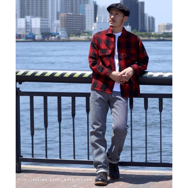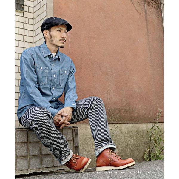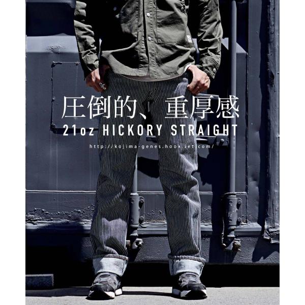 21oz ヒッコリー ストレートパンツ 【 児島ジーンズ 】 ボトムス アウトドア キャンプ バイク ツーリング ストライプ ホワイト 男性 女性【 RNB1221H 】