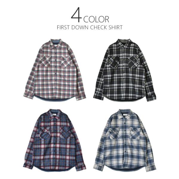 FIRST DOWN ファーストダウン チェックシャツ メンズ フリースシャツ 裏地フリース ストレッチ フラップポケット アウトドア アメカジ セール 爆買
