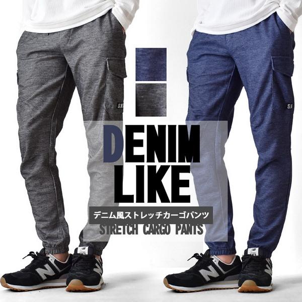 カーゴパンツ メンズ デニム風 ストレッチ スウェットパンツ ジョガーパンツ 送料無料 通販YC