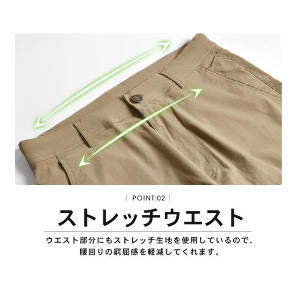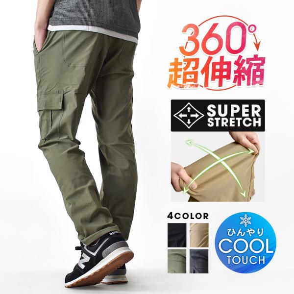 DRYストレッチ カーゴパンツ メンズ 超伸縮 接触冷感 UVカット 無地 スマホポケット 送料無料 通販Y