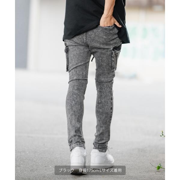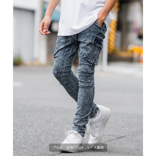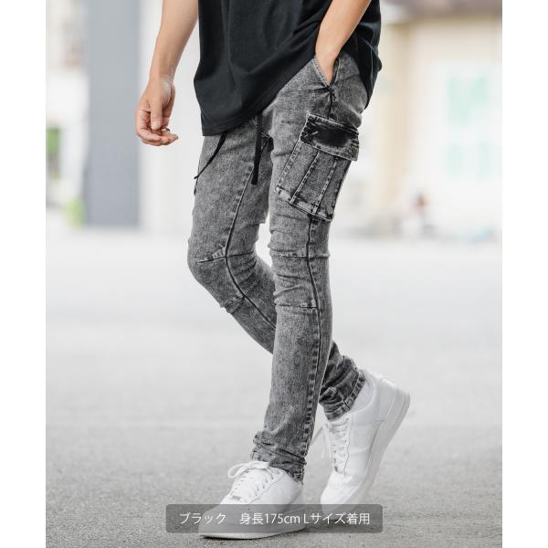 カーゴパンツ メンズ NULL ヌル スキニー スリム ストレッチ デニム ジーンズ パンツ ミリタリーパンツ イージーパンツ ケミカルウォッシュ 細身 韓国