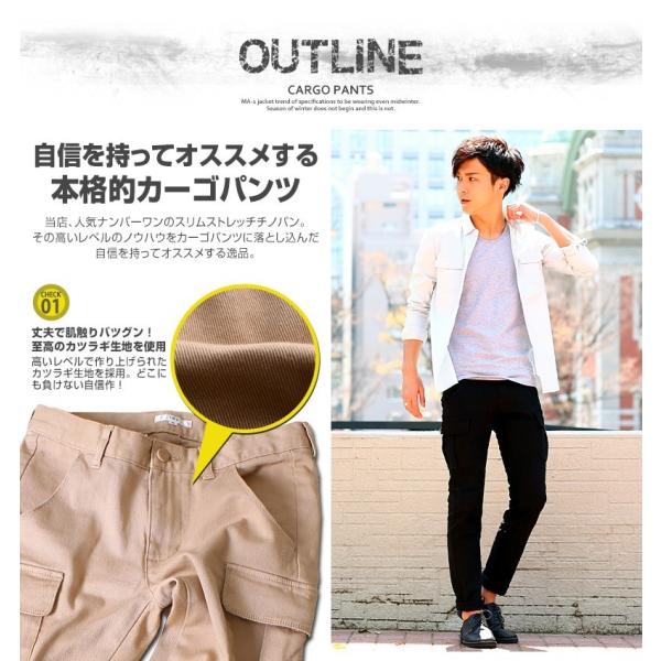 カーゴパンツ メンズ ボトムス ストレート スリム ストレッチ ミリタリーファッション アウトドアウェア