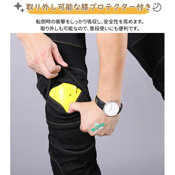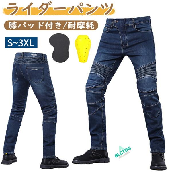 ライダーパンツ メンズ プロテクター付 デニム 通気性 ストレッチ ジーンズ バイク通勤 オートバイ 膝パッド 耐衝撃 365日着用 レーシングパンツ 洗濯機対応