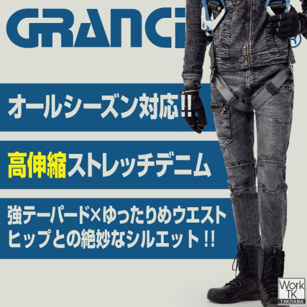 デニム カーゴパンツ メンズ レディース 年間 オールシーズン ストレッチ スリム 動きやすい おしゃれ カジュアル タカヤ グランシスコ GRANCISCO ty-gca712