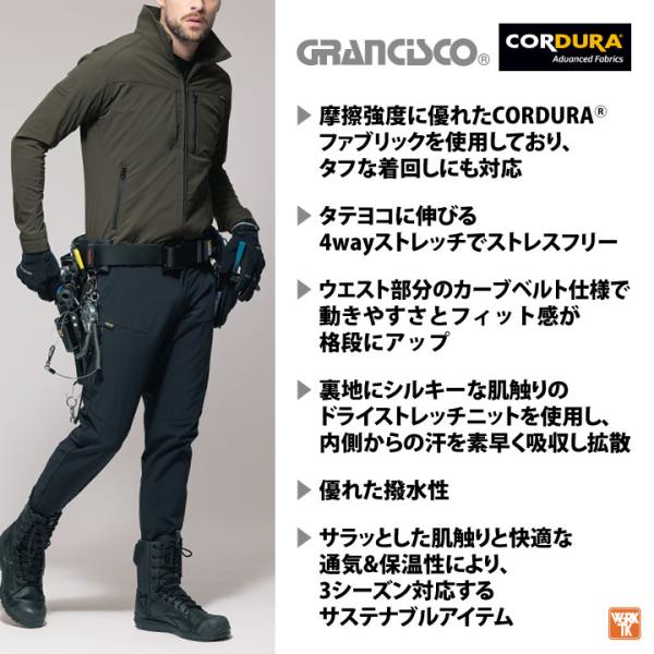 コーデュラ ナイロン カーゴパンツ ストレッチ 長袖 春夏 秋冬 メンズ レディース 作業着 作業服 おしゃれ かっこいい 大きいサイズ グランシスコ ty-gcw513