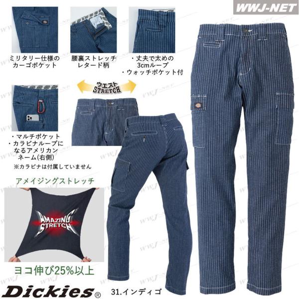 カジュアル Dickies D-695 カーゴパンツ ディッキーズ ストライプ ストレッチ 男女 作業服 作業着 ccd-695 コーコス