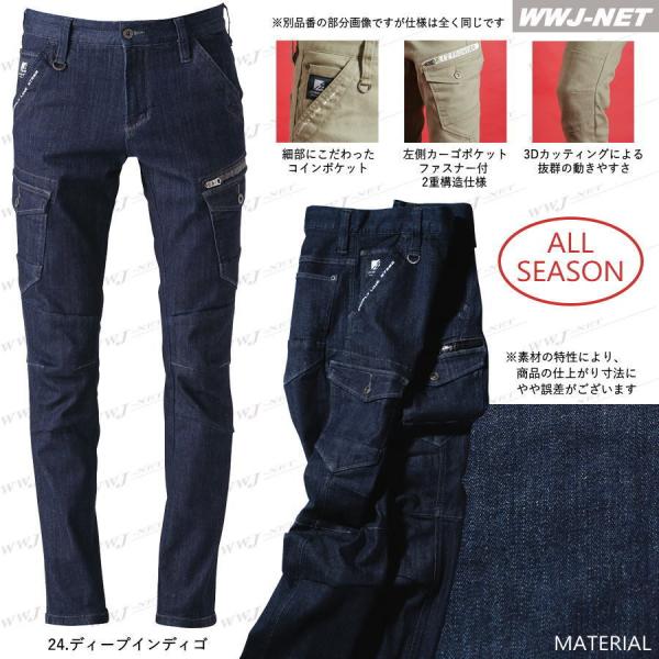 作業服 作業着 I'Z FRONTIER 7282D カーゴパンツ スタンダードモデル 3D ストレッチ デニム オールシーズン iz7282d アイズフロンティア@