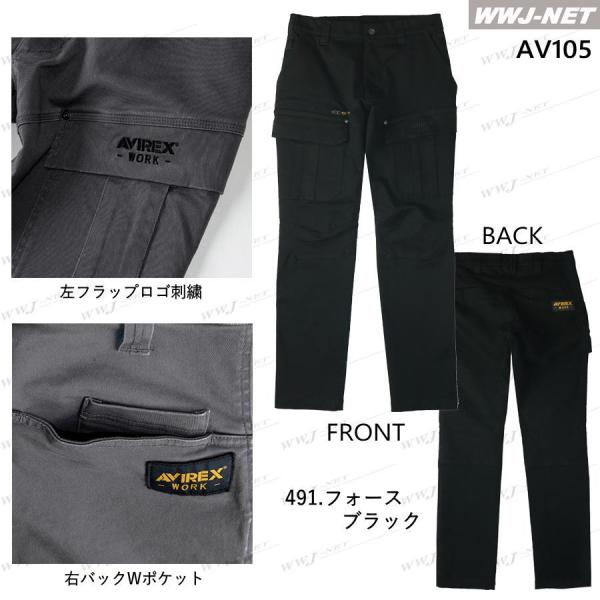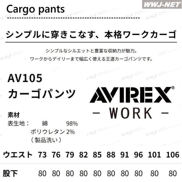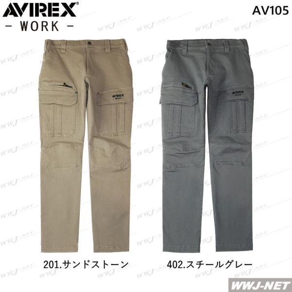 作業服 作業着 AVIREX AV105 カーゴパンツ ストレッチ 耐久性 綿高混率 アヴィレックス アビレックス kdav105 クロダルマ