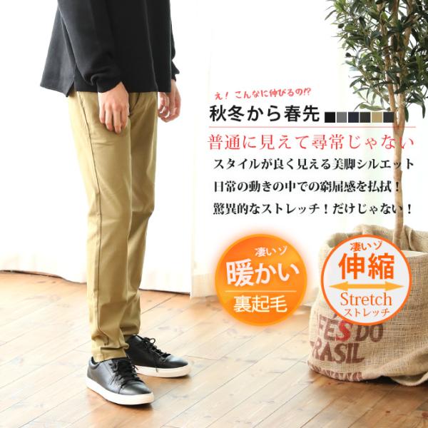 暖 パンツ 暖か メンズ ストレッチ ズボン チノパン 裏起毛 裏フリース 感激ストレッチ スマポケ スキニー ボトムス あったかパンツ/爆買