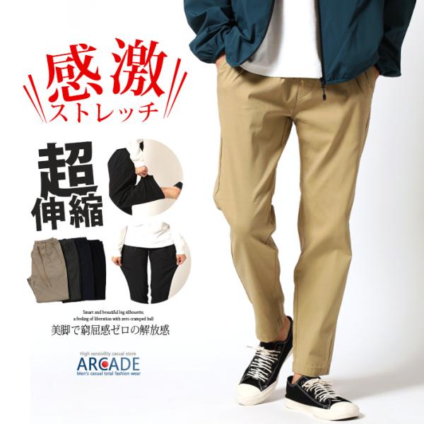 ズボン メンズ 伸びる ストレッチパンツ チノパン アンクルパンツ 美脚 ボトムス イージーパンツ くるぶし丈 スリム 無地 春 夏/爆買