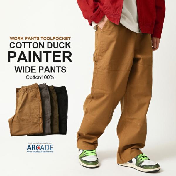 ワイドダックパンツ メンズ ペインターパンツ コットン ズボン ワークパンツ 丈夫 頑丈 アメカジ タフ ボトムス おしゃれ ストレート ミリタリー/爆買