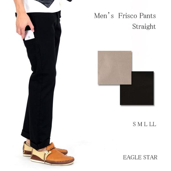 スマホポケット付き ストレッチパンツ メンズ パンツ ストレッチ 綿 チノ ツイル ストレッチ ストレート 黒 ブラック ベージュ EAGLE STAR
