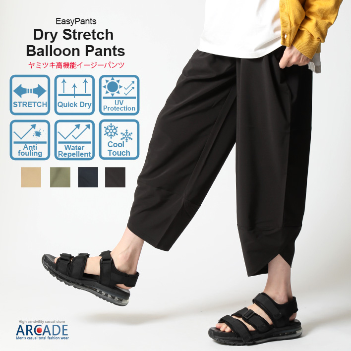 接触冷感 クロップドパンツ ズボン 7分丈 メンズ イージーパンツ 春夏 サルエル アラジン ストレッチ 防汚 吸水速乾 撥水 UV対策 ドライ ボトムス/爆買