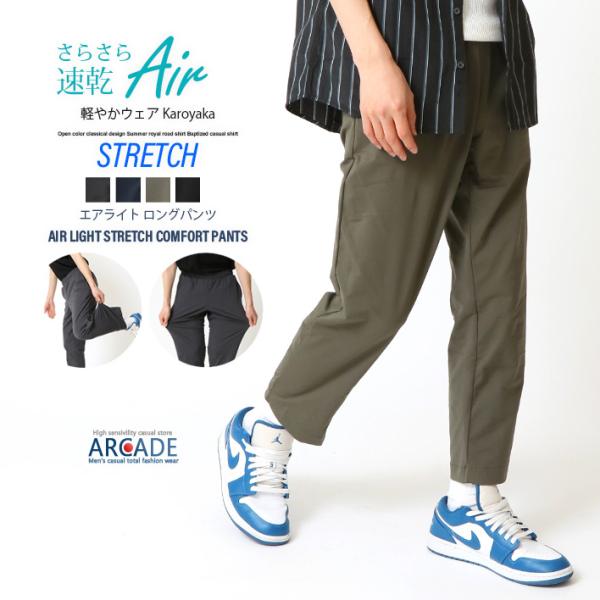快適クイックドライ ストレッチパンツ メンズ ズボン 伸縮性 アンクル メンズ 美脚 イージーケア くるぶし丈 きれいめ ウエストゴム ボトムス 2025夏/爆買