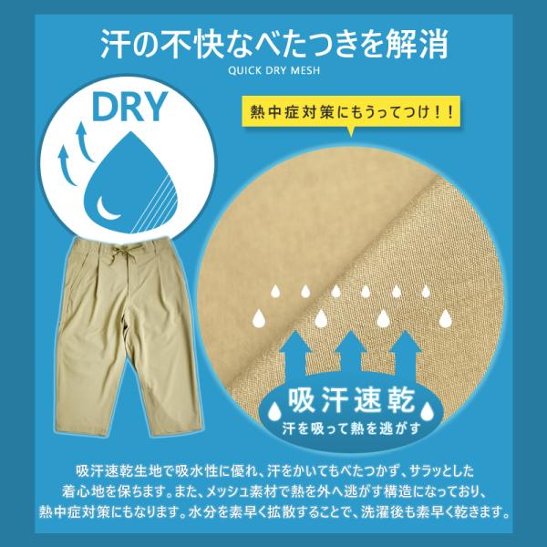 接触冷感 速乾 撥水 クロップドパンツ 6分丈 ストレッチ ハーフパンツ チノパン メンズ パンツ ゴルフパンツ ワイドパンツ 送料無料 通販MC《M1.5》