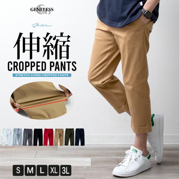 クロップドパンツ メンズ ストレッチ ハーフパンツ チノパン 膝下 7分丈 ゴルフウェア パンツ 七分丈 ストレートパンツ ツイルチノ ベージュ
