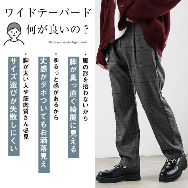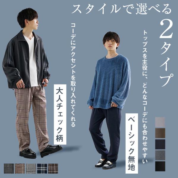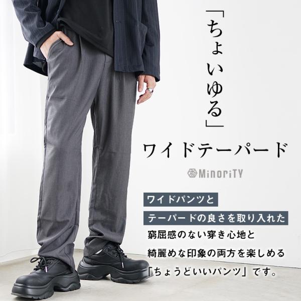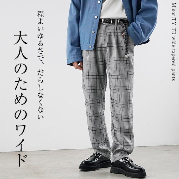 テーパードパンツ メンズ スラックス テーパード チェック柄 ウエストゴム 無地 黒 ワイドパンツ グレー 紺 マイノリティ minority