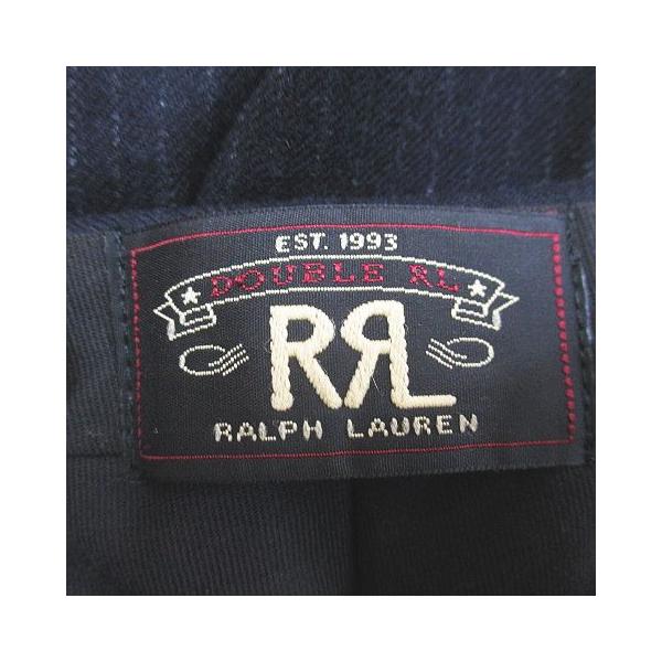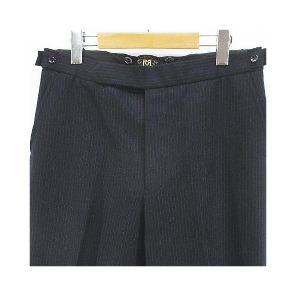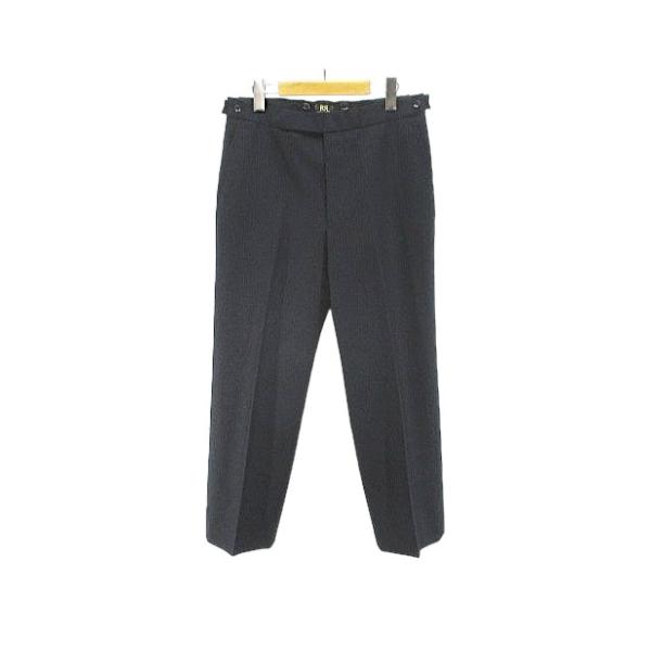 アールエルラルフローレン RL RALPH LAUREN PP-RS-NA-4130 ストライプ柄 ロング丈 テーパードパンツ スラックス ボタンフライ 31/32 紺系