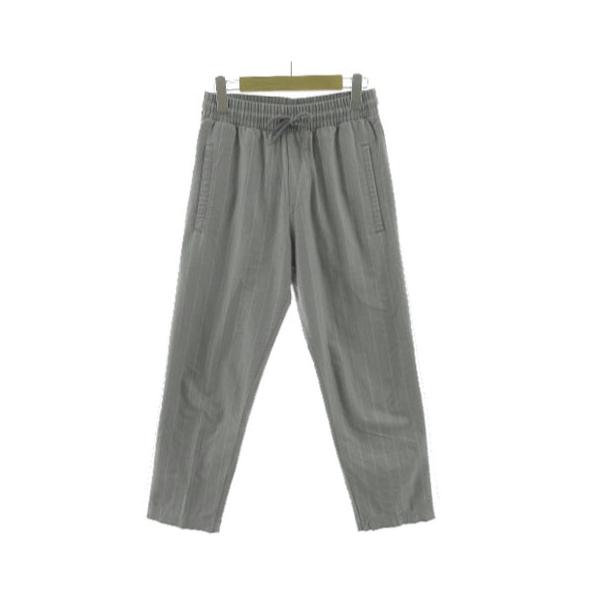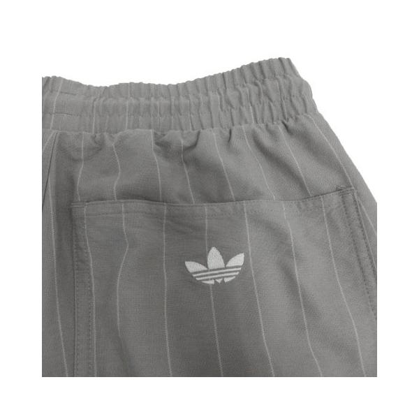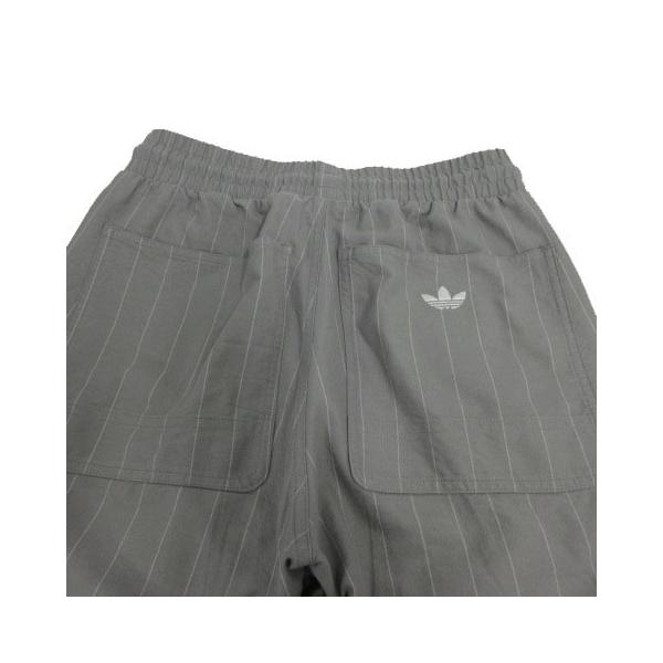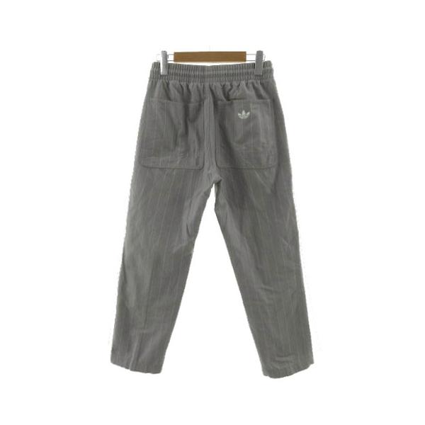 アディダス adidas パンツ イージーパンツ テーパード ロゴ刺繍 ウエストゴム コットン ストライプ グレー ホワイト 白 XS メンズ