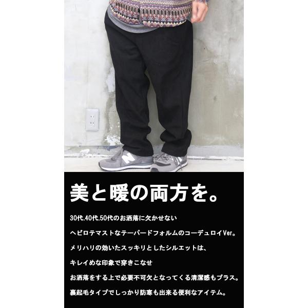 裏起毛コーデュロイパンツ テーパードパンツ メンズファッション コーデュロイパンツ テーパード 肉厚 厚手 春服 秋服 冬服 メンズ 裏起毛パンツ 無地 ブラック
