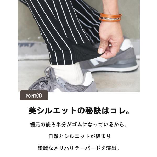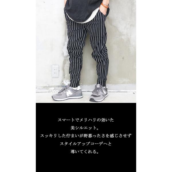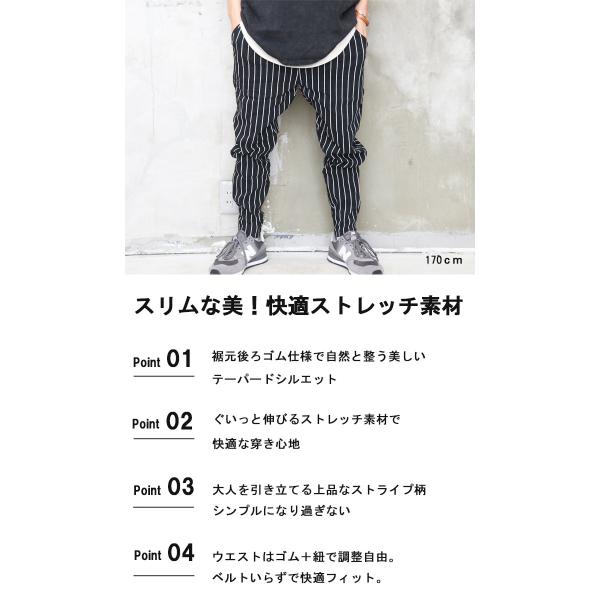 ストライプ柄テーパードパンツ メンズ [M便 1/1] ストライプ柄パンツ テーパードパンツ ブラック 春服 夏服 メンズ 秋服 スリム ストレッチ 裾リブパン