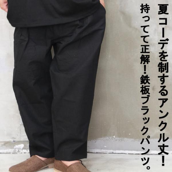 アンクル丈セミワイドテーパードパンツ アンクル丈パンツ メンズ ワイドパンツ メンズ ワイド ゆったり ブラック [M便 1/1] 黒 春服 夏服 秋服 メンズ 無地