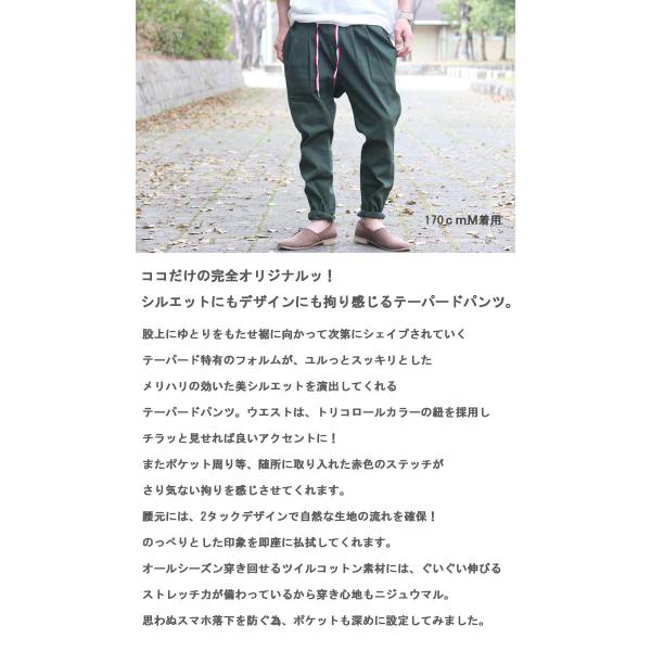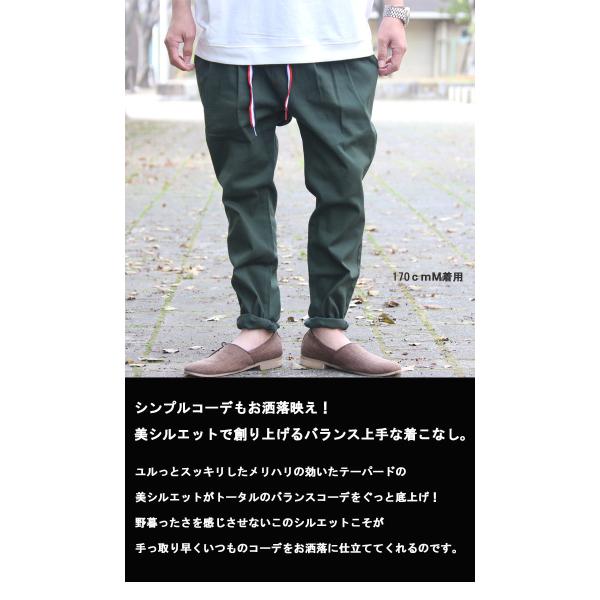ストレッチテーパードパンツ [M便 1/1] テーパードパンツ メンズ タックパンツ ブラック グリーン ブルー ストレッチ 紐 お洒落 人気 無地 春服 夏服 秋服 冬服