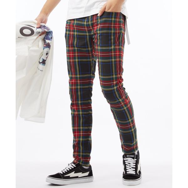 チェックパンツ メンズ 赤 スキニーパンツ スリム チェック柄 スラックス 青 緑 きれいめ ストリート系 スケーター