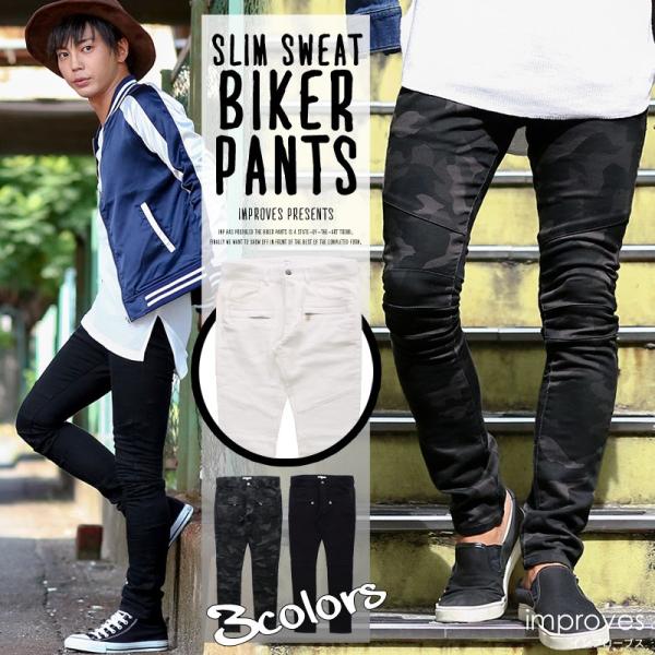 スキニー メンズ ボトムス スウェットパンツ チノパン ミリタリー 迷彩柄 パンツ バイカー