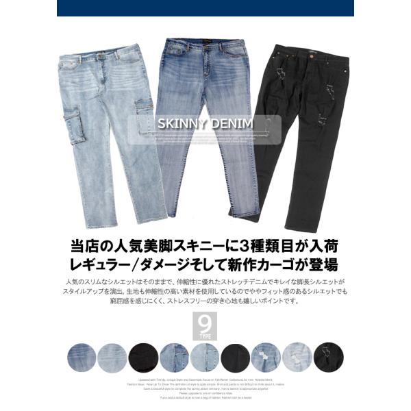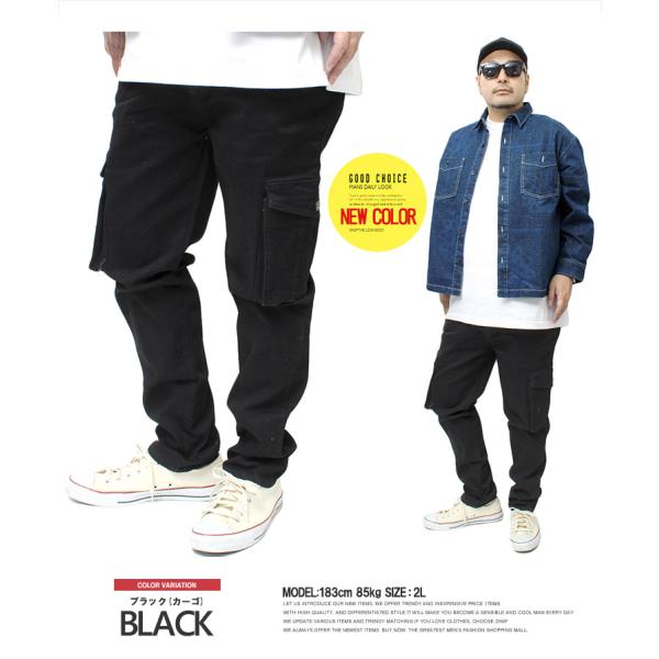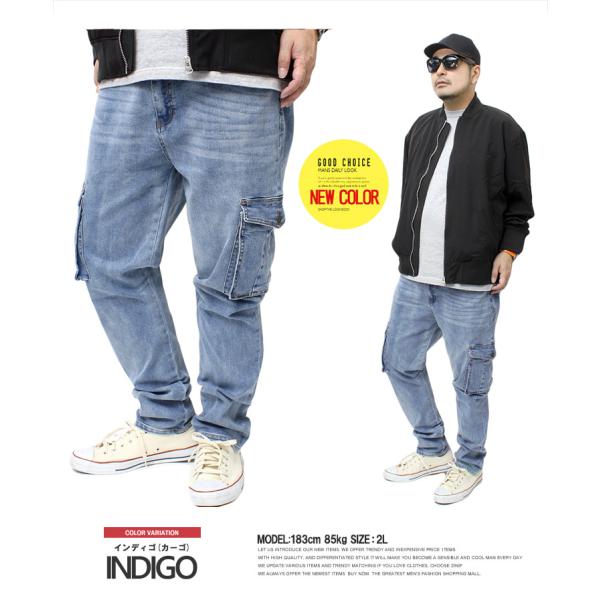 スキニーパンツ メンズ 大きいサイズ デニム パンツ ストレッチ ジーンズ ジーパン ズボン 細身 デニムカーゴ 黒 ブルー 安い ワークマン プラス