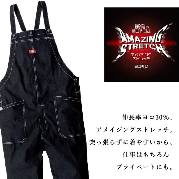 Dickies ディッキーズ ストレッチデニムサロペット D-709 オーバーオール おしゃれ ユニセックス 男女兼用 メカニック DIY アウトドア