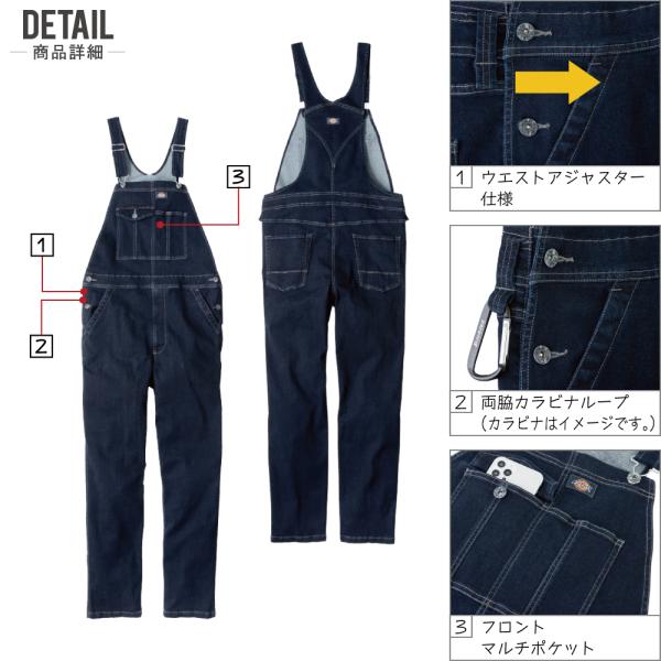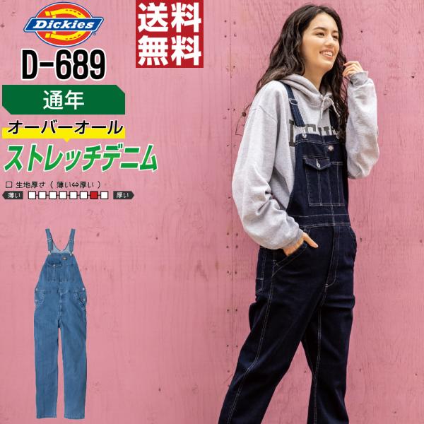 オーバーオール メンズ 作業服 Dickies ディッキーズ D-689 サロペット 通年 ストレッチ 作業服 デニム
