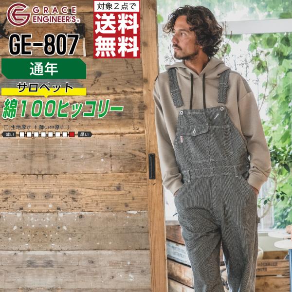 オーバーオール メンズ 作業服 グレイスエンジニアーズ GE-807 通年 ヒッコリー サロペット 定番モデル