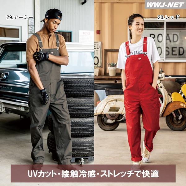 サロペット Dickies D-6709 オーバーオール 薄手 ディッキーズ 接触冷感 吸汗速乾 UVカット ストレッチ 男女 ツナギ ccd-6709 コーコス