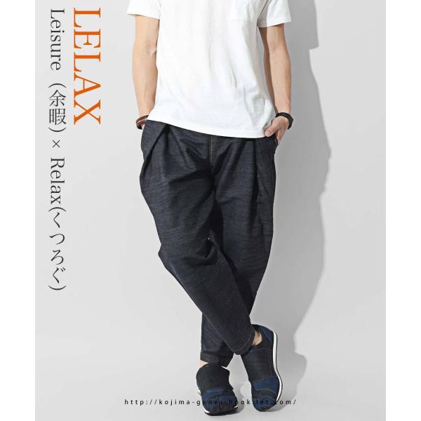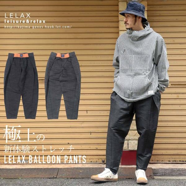 レラックス バルーンパンツ 【 児島ジーンズ 】 サルエル ワイド デニム ストレッチ インドア アウトドア キャンプ 自転車 無地 男性 女性 【 LX102 】
