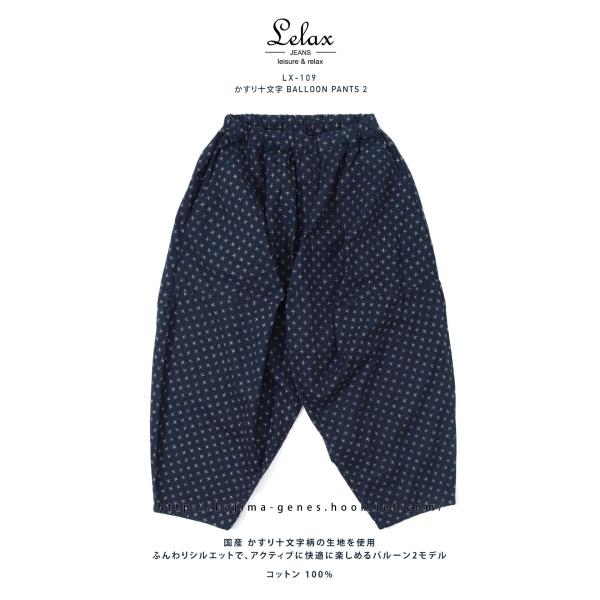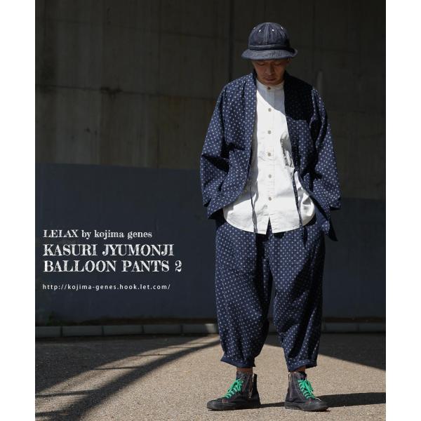 LELAX by 児島ジーンズ かすり 十文字 バルーン パンツ 2 メンズ サルエル バイク パンツ インディゴ