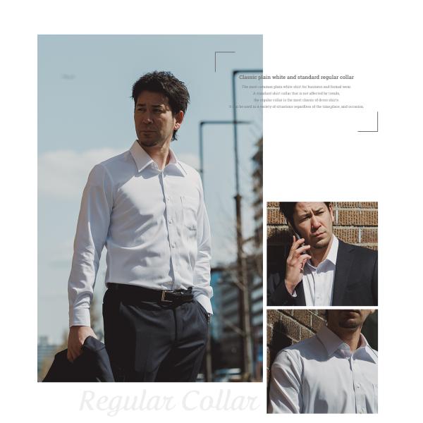 ワイシャツ ノーアイロン メンズ 長袖 透けにくい ストレッチ 吸水速乾 レギュラーカラー ボタンダウン ホリゾンタルカラー / pm【メール便送料無料】