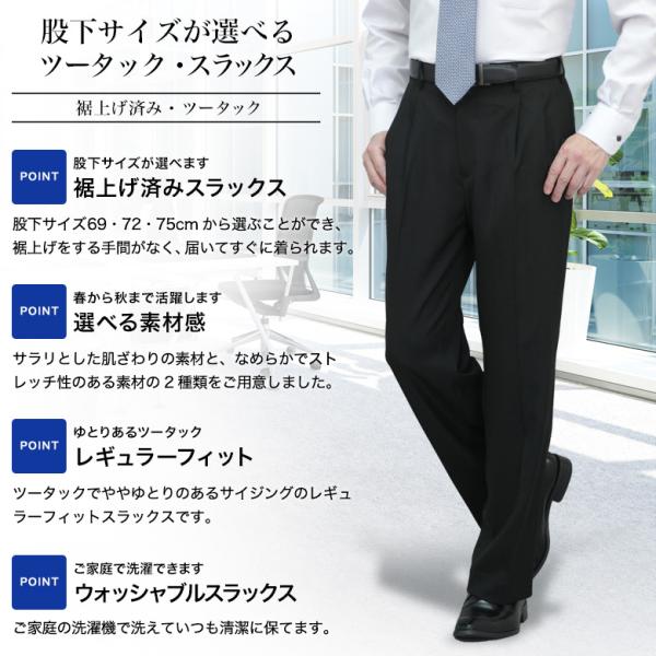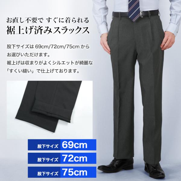 裾上げ済み スラックス ツータック ゆとり レギュラーシルエット メンズ 洗える クールビズ ビジネス ビジカジ カジュアル 裾上げ不要 防シワ 大きいサイズ