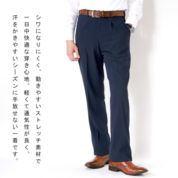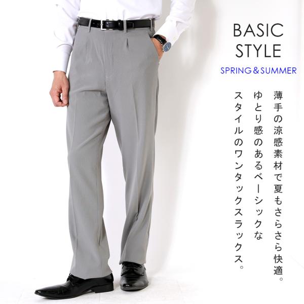 スラックス 夏用 ワンタック メンズ ビジネス 涼しい 洗える ストレッチ ウォッシャブル パンツ クールビズ ベーシック 通気性 涼感 軽量
