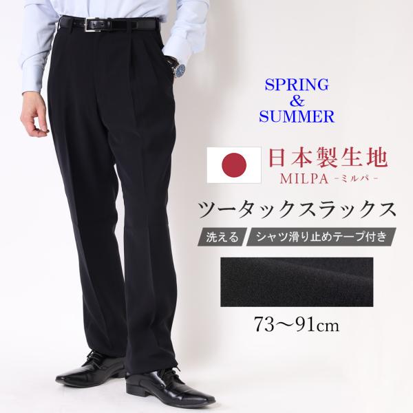 スラックス ツータック 春夏 日本製生地 ミルパ MILPA メンズ ビジネス 洗える ウォッシャブル パンツ COOLBIZ クールビズ ベーシック