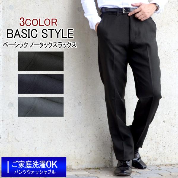 スラックス 秋冬ノータックスラックス ご家庭で洗える ベーシックモデル 3color ビジネススラックス WARMBIZ