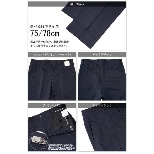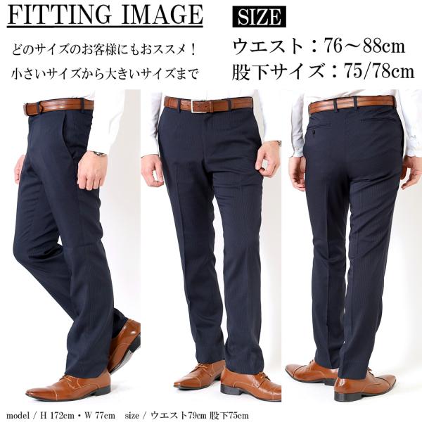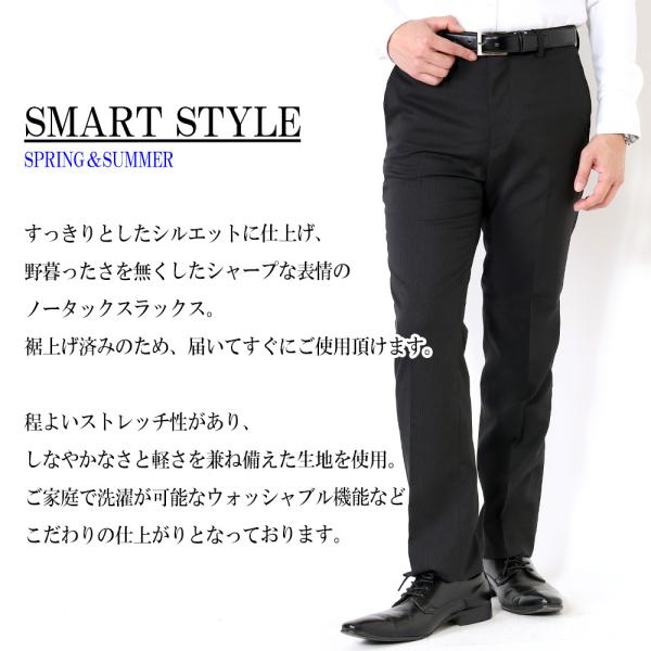 スラックス 裾上げ済み メンズ ノータック 春夏 ビジネス パンツ ウォッシャブル 洗える ストレッチ素材 ズボン ストライプ クールビズ