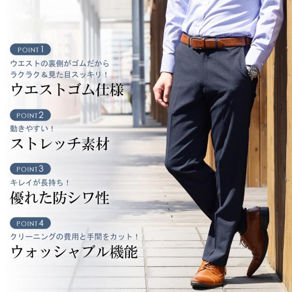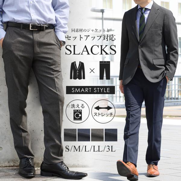 セットアップ対応 スラックス ノータック メンズ ウールライク ストレッチ素材 ウエストストレッチ 春夏 洗える 防しわ 洗濯可能 ビジネス クールビズ