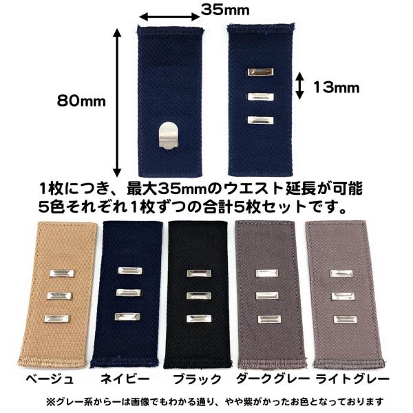 5色セット ウエスト 調整 アジャスター フック式 サイズ直し サイズ調整 スーツ ズボン スラックス パンツ スカート ワンタッチ 簡単 5枚セット グレー 送料無料