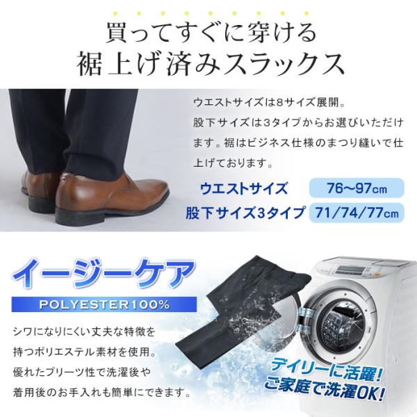 裾上げ済み スリム ノータック スラックス 春夏 洗える メンズ ビジネス クールビズ 秋冬 防シワ ミッドライズ ビジカジ 美脚 細身〜標準 人気 ビジカジ パンツ