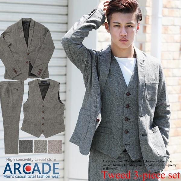 半額セール 3点セット セットアップ ツイード 3ピースセット テーラードジャケット ジレベスト パンツ セール202201/爆買